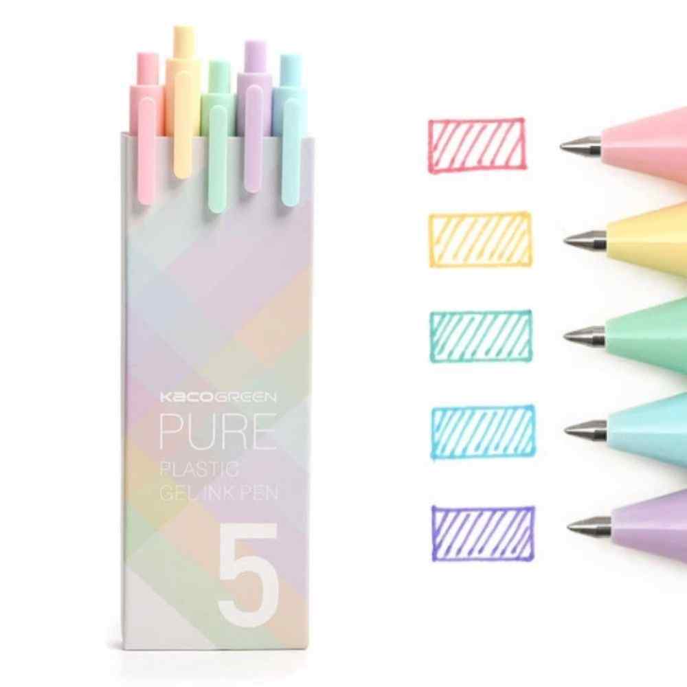 Lindo pack de 5 lápices de tinta gel de colores pasteles en 0,5 mm. ¡Alegra tus cuadernos, agenda, mensajes y dale color a tu escritura! Incluye: 5 lápices de color (rosado, morado, amarillo, verde y celeste) y caja para guardarlos. Preparamos cada producto Karmas en un precioso packaging con cintas de colores y lleno de detalles en su interior, para sorprender a tus más queridos o a ti misma.