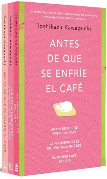 Kawaguchi Toshikazu - Adéntrate en la Cafetería Que ya ha Conquistado a Más de Cinco Millones de Lectores Con Esta Preciosa Edición Estuche Que Reúne Los Tres Primeros Libros de la Saga. Antes de Que se Enfríe el Café: Un Rumor Circula Por Tokio Oculta en Uno de Sus Callejones Hay Una Pequeña Cafetería Que Merece la Pena Visitar no Solo Por su Excelente Café Sino También Porque si Eliges Bien la Silla Donde Sentarte Puedes Regresar al Pasado. Pero Como Incluso lo Increíble Está Sujeto a Limitaciones no Podrás Salir de la Cafetería Mientras Dure el Viaje Volverás Cuando el Café se Enfríe y Hagas lo Que Hagas el Presente no Cambiará. A Través de Las Emocionantes Historias de Cuatro Clientes Que se Atreven a Embarcarse en Esta Aventura Por Motivos Diferentes Antes de Que se Enfríe el Café Nos Ofrece un Relato Atemporal Sobre el Amor Las Oportunidades Perdidas y la Esperanza de un Futuro Que Siempre Está Por Llegar. La Felicidad Cabe en Una Taza de Café: Dicen Que en la Cafetería Funikuri Funikura Hay Una Mesa en la Que Puedes Sentarte Pedir un Café y Viajar al Pasado Durante el Tiempo Que Tarda Este en Enfriarse. Bajo la Atenta Mirada de la Encantadora Camarera Kazu Los Clientes Del Café se Enfrentarán a Los Momentos Más Importantes de Sus Vidas y Descubrirán Que la Felicidad Consiste en Saber Perdonarse a Uno Mismo.