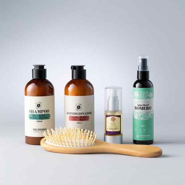 Consigue un cabello fuerte y saludable con nuestro Pack Anticaída. El Shampoo y Acondicionador trabajan en sinergia para fortalecer y revitalizar tu cabello, mientras que el Argán y el Agua de Romero estimulan el crecimiento y promueven un cuero cabelludo saludable. Además, recibirás un cepillo de madera de regalo para un cuidado suave y sin tirones. ¡Recupera la belleza y densidad de tu cabello con este completo pack!