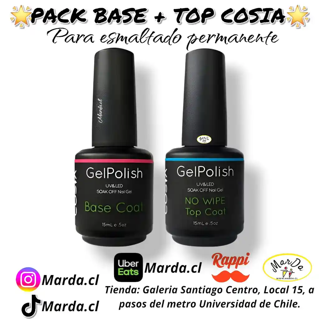 PACK BASE COAT COSIA 15 ML + TOP COSIA 15 ML PARA ESMALTADO PERMANENTE