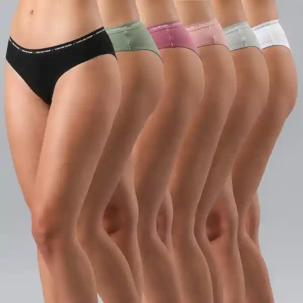Pack Flores Contiene 6 Unidades. Bikini Algodón Logo Color Mix Talla M 95% Algodón y 5% Elastano.