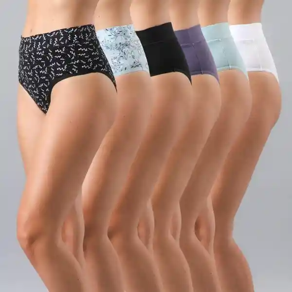 Pack Flores Contiene 6 Unidades. Hikini Algodón Print & Solid Color Mix Talla M 90% Poliamida y 10% Elastano.