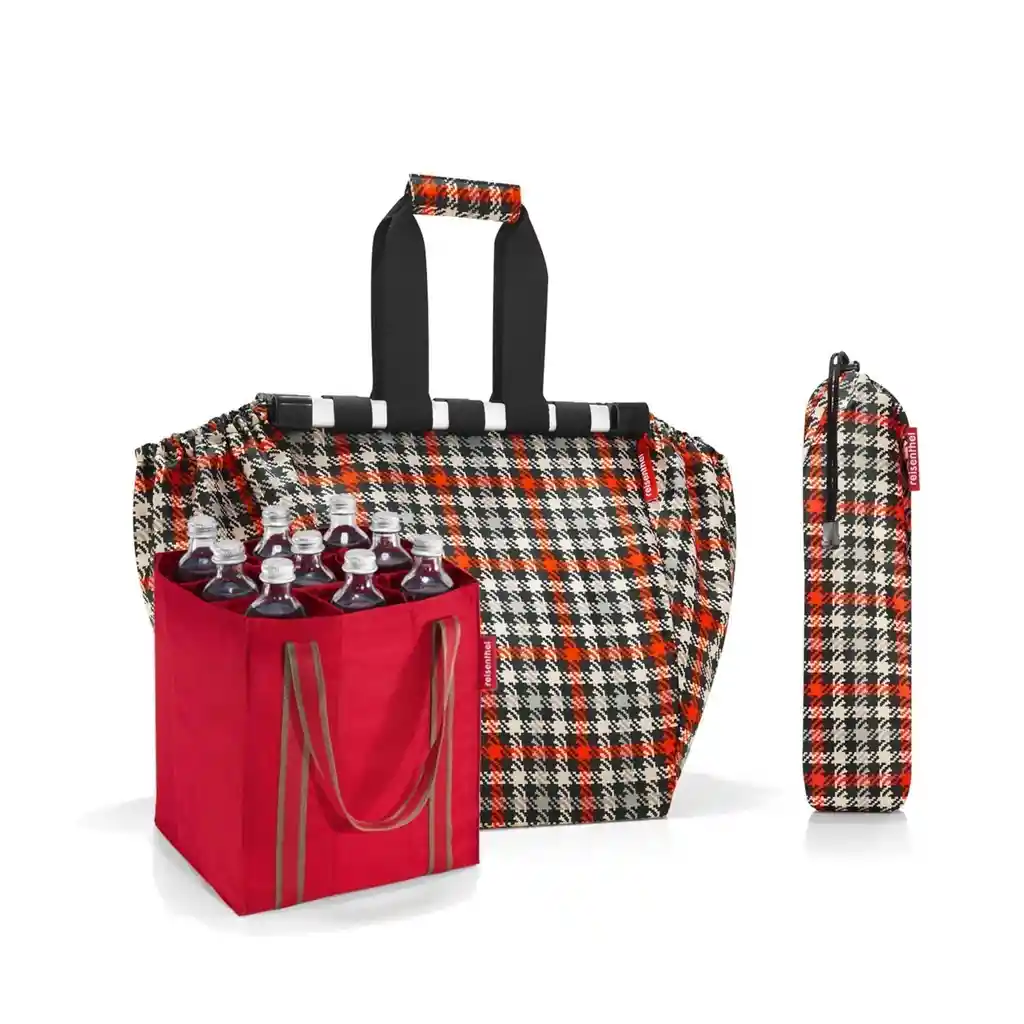 Ir de shopping con este pack de Reisenthel es muy práctico. El bolso botellero y la bolsa de compras de reisenthel lo hace posible! En el supermercado, estas bolsas de compras son fáciles de llenar y reemplazan al menos tres bolsas de plástico y lo mejor que tus botellas ya no rodaran por ahí. Tiene un sofisticado diseño plegable, ambos cuenta con asas de agarre. Características: Bolso Botellero: 28 x 24 x 24 cm, capacidad para 9 botella Bolsa de compras easyshoppingbag: 32,5 x 38 x 51 cm, tiene un bolsillo interior, una bolsa para mantenerla guardada y ganchos para agarrarlas en el carro del supermercado. Diseño Alemán