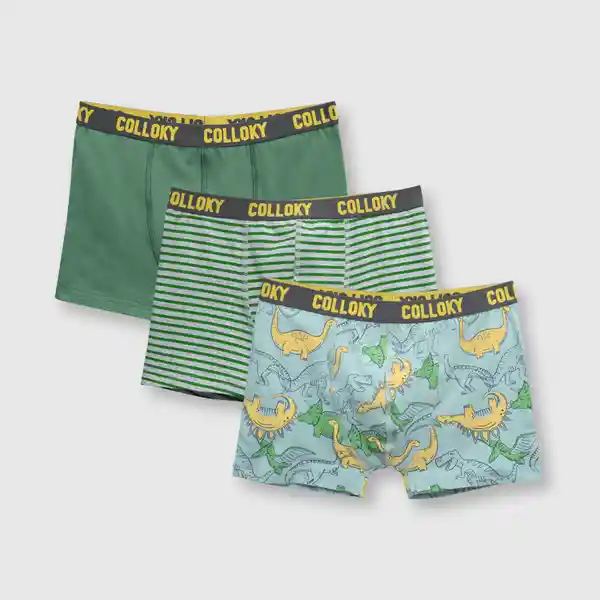 Pack Bóxer de Algodón Elastizado de Niño Verde T. 8A Colloky