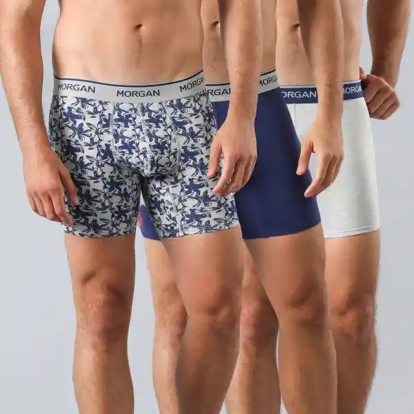 Pack Flores Contiene 3 Unidades. Boxer Medio Color Azul Talla XL 93% Algodon y 7% Elastano.