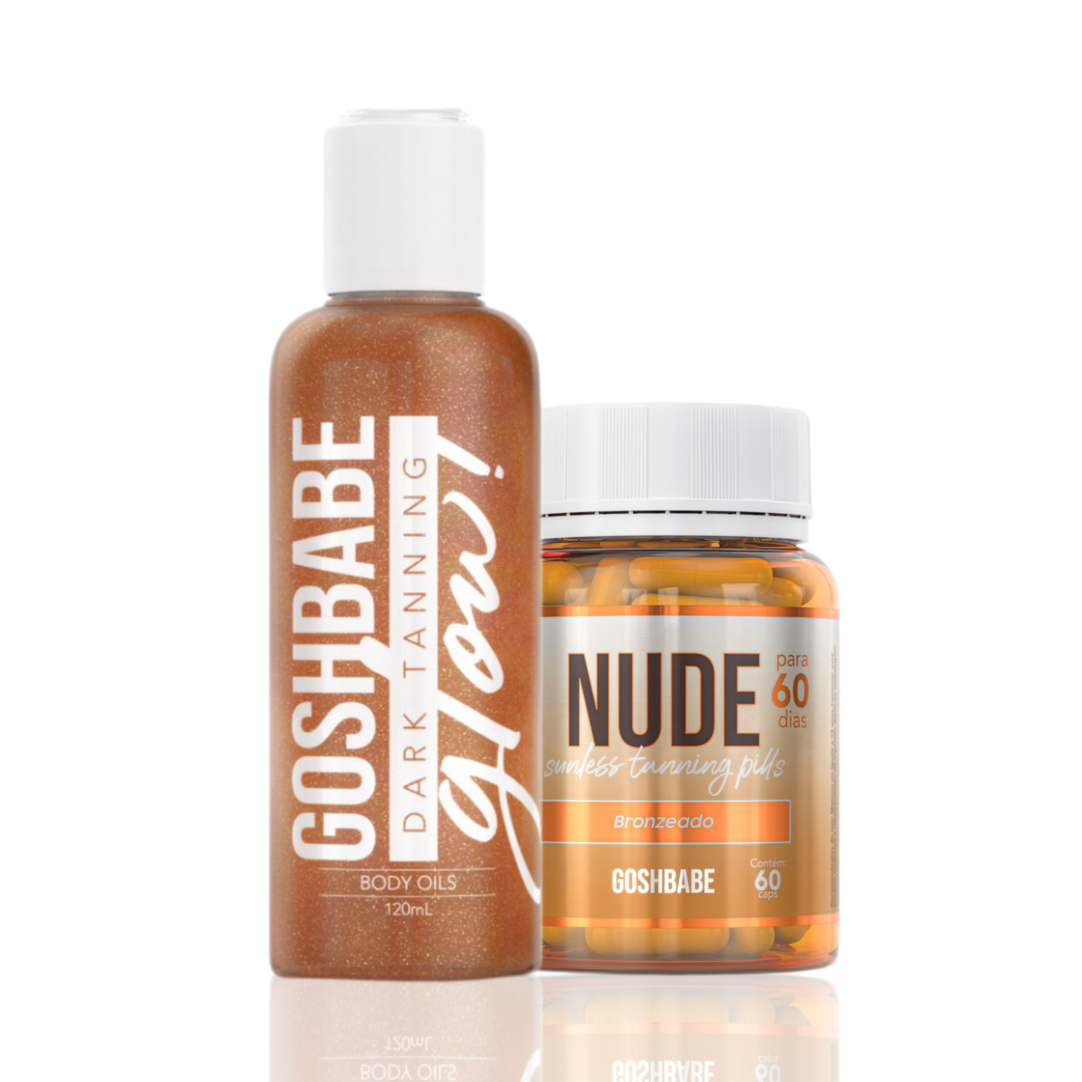 Este pack contiene 1 frasco Cápsulas Nude bronceado 2 meses + 1 Aceite bronceador Dark