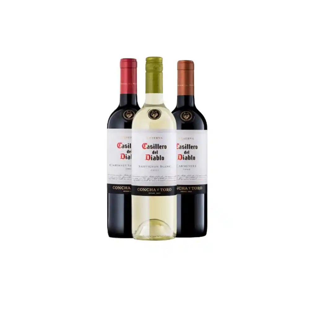 Pack Casillero del Diablo, contiene x1 Cabernet, x1 Carmenere y x1 S.Blanc