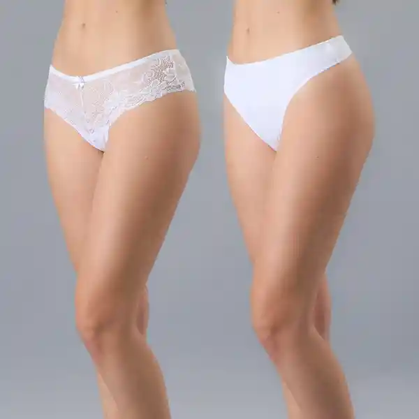 Pack Flores Contiene 2 Unidades: Colaless Blonda y Microfibra Color Blanco Talla XL 80% Poliamida y 20% Elastano.