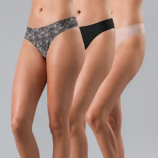 Pack Flores Contiene 3 Unidades. Colaless Bonded Microprint Color Negro Talla L 85% Poliamida y 15% Elastano.