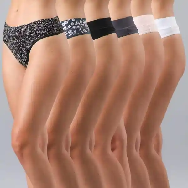 Pack Flores Contiene 6 Unidades. Culotte Algodón Print y Solid Color Mix Talla XL 90% Poliamida y 10% Elastano.
