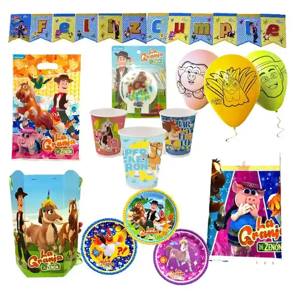•24 Platos •1 Vela •24 Bolsitas de Dulces •4 Mantel •24 Vasos •12 Globos •1 Piñata •1 Guirnalda