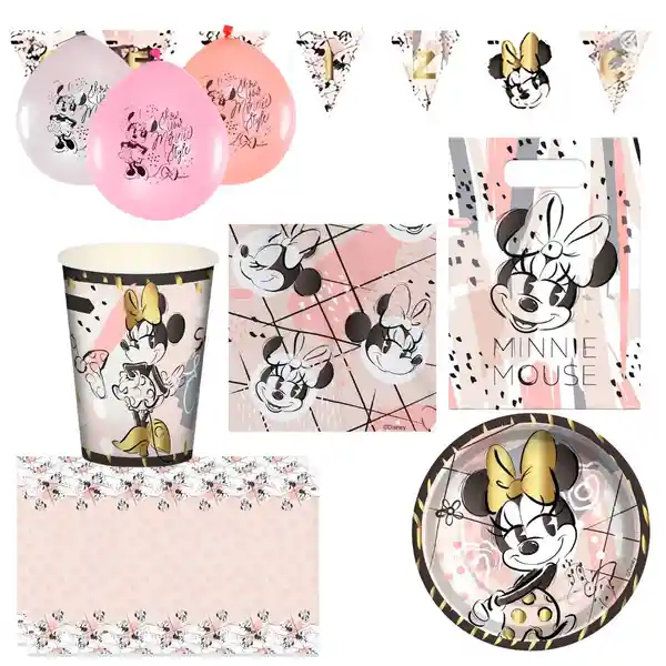 •24 Platos •1 Guirnalda •24 Servilletas •4 Mantel •24 Bolsitas •12 Globos •24 Vasos