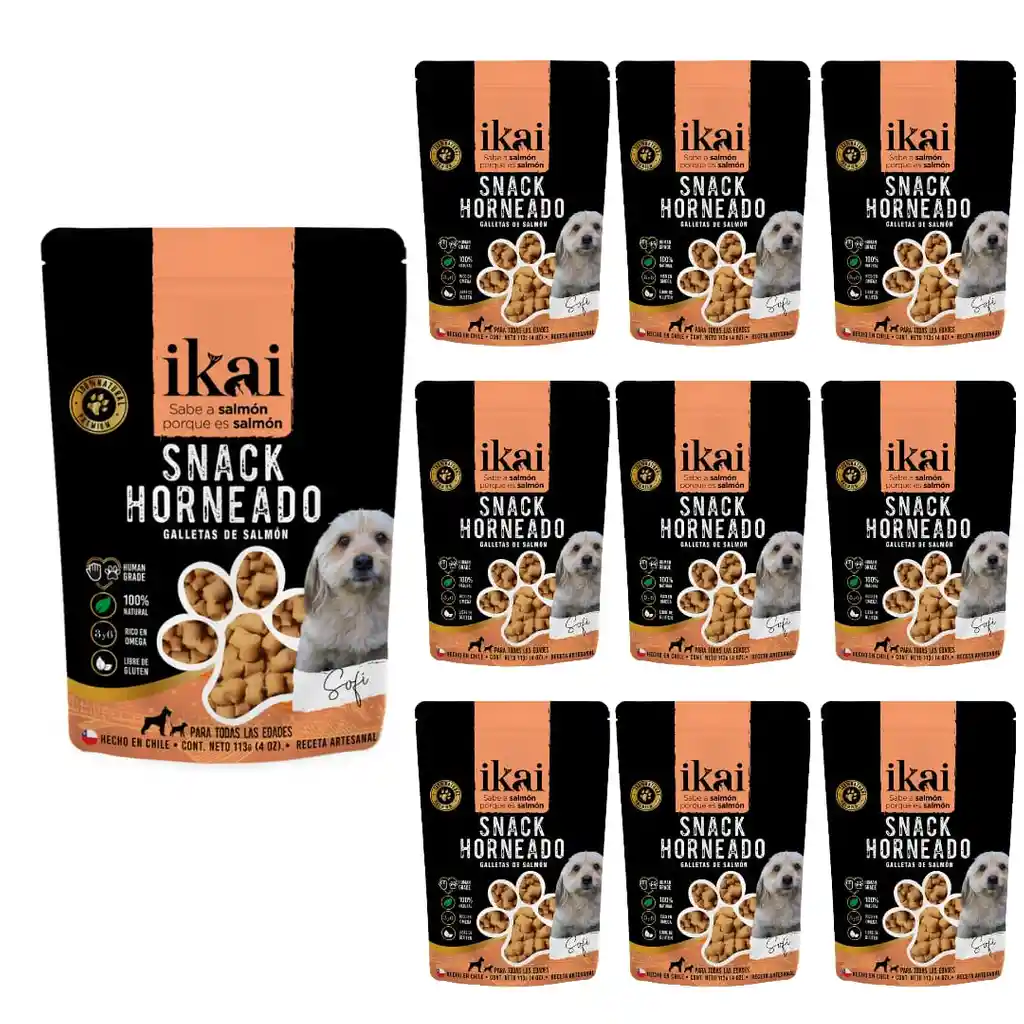 IKAI Horneados para Perros es un snack de Salmón rico en omega 3 y omega 6, ayuda a fortalecer el sistema inmunológico y cardíaco, mantiene la piel y pelaje sano y favorece al tránsito intestinal. Es un snack 100% natural, libre de gluten, contiene antioxidantes naturales, sin preservantes ni colorantes y sin sal añadida.