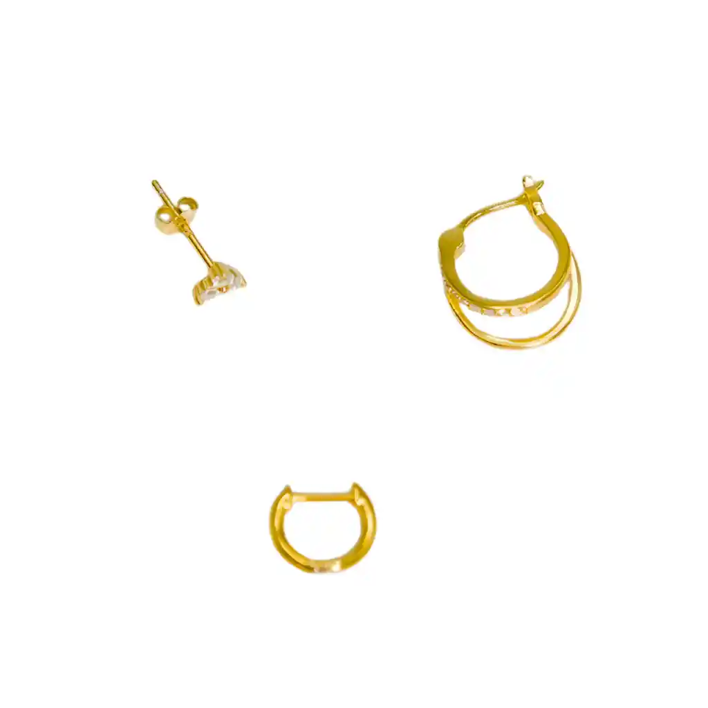 No era un pack… era la libertad de diseñar su propia historia.” Ella siempre había amado las orejas llenas de brillo. No por moda, sino porque cada perforación contaba algo distinto: su primer viaje, un amor que superó, una decisión valiente, un comienzo nuevo. La joyería para ella no era solo estética… era identidad. Y cuando descubrió el Pack Lia en Plata 925 con baño de oro 18K, supo que por fin había encontrado un set que hablaba el mismo idioma que ella. Un stud triangular de zirconias de 5 mm, perfecto para el lóbulo o el tragus. Un aro mini de 7 mm interno, ideal para diseños delicados o minimalistas. Un aro de 10 mm interno con circonias al frente, ese que aporta el brillo que completa todo el look. Tres piezas. Tres estilos. Un solo pack diseñado para quienes aman jugar con sus perforaciones, mezclar tamaños, elevar un outfit o crear una composición única en la oreja. Y lo mejor… plata 925 bañada en oro 18k, brillante, duradera y hipoalergénica. No importa si tiene dos, tres o cinco perforaciones. El Pack Lia no impone reglas. Invita a crear. A contar una historia oreja por oreja. Porque algunas joyas se usan… pero otras se viven. 💎 Características del Pack Lia Material: Plata fina 925 con baño de oro 18k. Incluye 3 piezas: Stud de zirconias en triángulo (5 mm, zirconias 2 mm). Aro liso mini (7 mm diámetro interno). Aro con circonias frontales (10 mm diámetro interno). Peso total: 1.4 g aprox. Acabado: Brillo espejo, oro 18k. Estilo ideal para: Diseños múltiples en orejas con varias perforaciones. Lóbulo, segundo y tercer lóbulo, helix, tragus. Looks elegantes, minimalistas o de tendencia. Hipoalergénicos: aptos para piel sensible. Duraderos: plata 925 + baño de oro de alta resistencia. 🌟 Beneficios destacados ✨ Combina, apila, diseña: perfecto para orejas con múltiples perforaciones. 💛 Premium: toda la estructura es plata 925 con baño de oro 18k. 💫 Ligero y cómodo: no genera peso ni irritación. 💎 Brillo equilibrado: mezcla de minimalismo y glamour. 🎀 Versátil: 1 pack = infinitas combinaciones. 🧡 Hipoalergénico y seguro: ideal para uso diario.