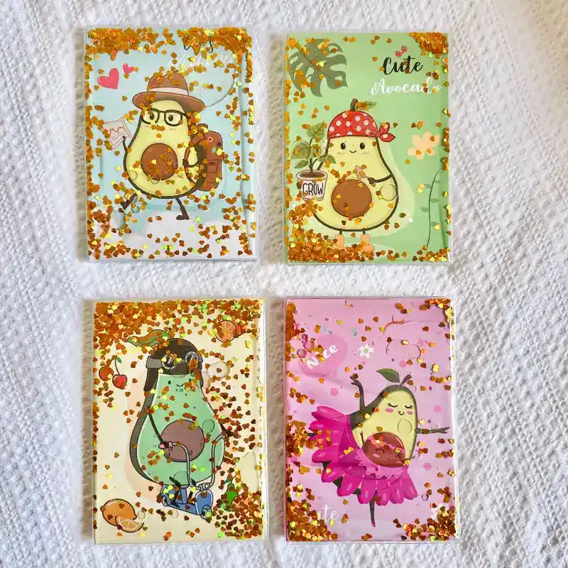 ¡Dale vida y diversión a tus anotaciones con este set único de cuadernos inspirados en la encantadora palta kawaii! Sea para tomar apuntes, dibujar o escribir tus pensamientos, este pack es el compañero ideal para llevar contigo a cualquier parte. Características Principales: Diseños Únicos: Cada cuaderno cuenta con una ilustración distinta que personifica a la palta de la manera más adorable: * Palta Bailarina * Palta Mochilera * Palta Jardinero * Palta Patineta Calidad Premium: Fabricados con tapa dura, estos cuadernos son resistentes y duraderos. Además, las hojas de alta calidad aseguran una escritura suave y sin traspasos. Tamaño Perfecto: Con un tamaño A5, es el equilibrio ideal entre portabilidad y espacio de escritura. Cabe perfectamente en tu mochila, bolso o maletín. Especificaciones: Tamaño: A5 Cantidad de hojas: 80 Tipo de hojas: Líneas Encuadernación: Tapa dura ¡Déjate encantar por estos diseños únicos y originales que te sacarán una sonrisa cada vez que tomes nota! Perfectos para regalo o para añadir un toque kawaii a tus útiles escolares o de oficina. ¡Hazte con el tuyo antes de que se agoten!