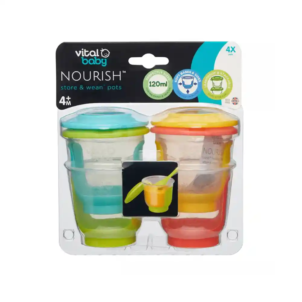 ¿Cómo pedir Pack De 4 Pocillos De Almacenamiento Vital Baby 120ml en Rappi?