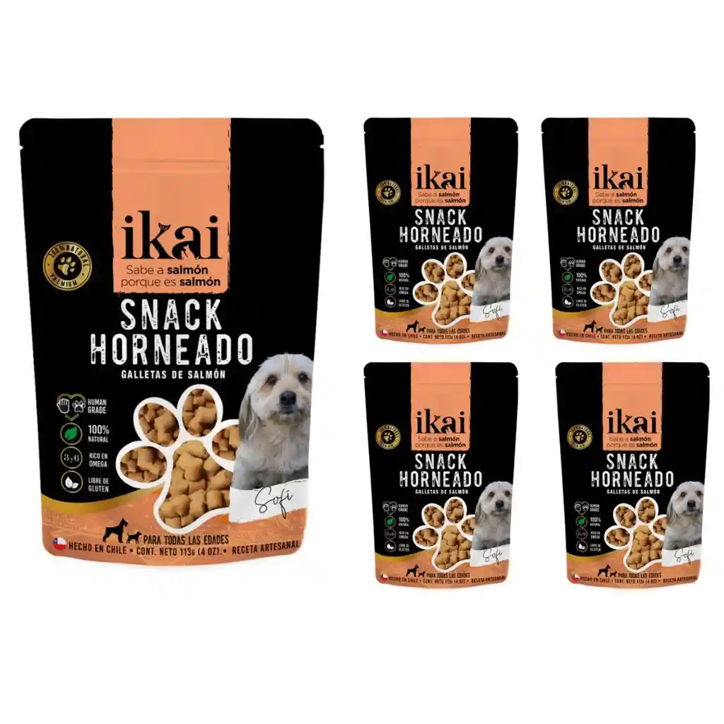IKAI Perros es un snack de Salmón rico en omega 3 y omega 6, ayuda a fortalecer el sistema inmunológico y cardíaco, mantiene la piel y pelaje sano y favorece al tránsito intestinal. Es un snack 100% natural, libre de gluten, contiene antioxidantes naturales, sin preservantes ni colorantes y sin sal añadida.