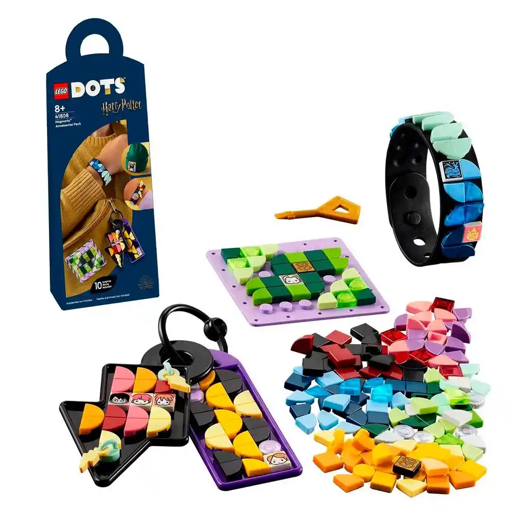 ¿Quieres un kit divertido para un fan de Harry Potter™ o un peque de 8 años o más? ¡Regálale el Pack de Accesorios: Hogwarts™ LEGO® DOTS (41808) para que luzca su pasión! El set cuenta con 4 lienzos DOTS: una pulsera con dos filas de espigas, un parche para coser, un adorno para mochila rectangular y un adorno para mochila que representa la cicatriz en forma de rayo de Harry Potter, con una anilla y una llave. Entre las piezas decorativas, de diferentes formas y colores, encontrarás amuletos, bases para amuletos y 10 piezas estampadas (de una gama de 16 motivos distintos). Los niños y las niñas podrán crear infinitos diseños para reflejar lo mucho que les encanta Harry Potter o revelar su casa de Hogwarts favorita y expresar su personalidad. Multipack de diversión creativa Los sets DOTS descubren a los peques la alegría del juego con LEGO mientras los construyen y decoran. Repletos de posibilidades, son perfectos como divertido regalo inesperado para niñas y niños creativos. • Decora, luce y repite: Fascina a cualquier niño, niña o fan de Harry Potter™ con el set DIY LEGO® DOTS Pack de Accesorios: Hogwarts™ (41808). La diversión creativa comenzará nada más abrir el paquete. • Infinitas posibilidades: Ayuda a tu peque a desarrollar sus habilidades creativas con 4 vistosos lienzos DOTS, piezas decorativas en una gama de inspiradores colores, amuletos, bases para amuletos y 10 piezas estampadas aleatorias. • Pon en marcha la creatividad: Este set estimula la imaginación de los niños. Pueden combinarlo con cualquier otro kit LEGO® DOTS basado en Harry Potter™ (como los sets 41809 o 41811, a la venta por separado) para ampliar las opciones de diseño. • Viaje creativo para mayores de 8 años: Esta mezcla de accesorios ponibles, piezas decorativas de colores y 10 piezas estampadas de una gama de 16 motivos distintos es una divertida idea de regalo llena de juego para amantes de las manualidades. • Diversión ponible: La pulsera mide 20 cm de longitud, así que los peques cuentan con un montón de espacio en ella y en los otros 3 objetos para dar rienda suelta a su creatividad. • Decoración rápida: Las ideas del paquete permiten empezar a decorar y redecorar los accesorios ponibles de inmediato; además, sirven de inspiración a los niños para crear nuevos diseños y lucir su pasión por Harry Potter™. • Para diseñar libremente y con confianza: Este kit LEGO® DOTS representa la libertad creativa. Los accesorios ponibles ofrecen un sinfín de oportunidades para potenciar el ingenio y confianza en sí mismos de los peques a través de la diversión. • Expresión y juego sin límites: Los sets LEGO® DOTS invitan a los niños y las niñas a disfrutar de la alegría del juego con LEGO mediante la creación y la personalización de sus propias joyas de fantasía, accesorios ponibles u objetos de decoración. • Calidad sin concesiones: Desde 1958, los componentes LEGO® cumplen estrictas normas del sector para garantizar que siempre se conecten perfectamente. • La seguridad es lo primero: Los componentes LEGO® se dejan caer, se calientan, se aplastan, se retuercen y se analizan para verificar que este set LEGO DOTS satisface rigurosos estándares mundiales de seguridad."