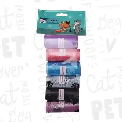 pack de 6 rollos de bolsitas desechos con un diseño de huellas, para utilizar en tu dispensador tendrás bolsitas para poder recoger lo que deje tu mascota. bolsitas de desechos son creadas con materiales biodegradables EPI para el cuidado del medioambiente.