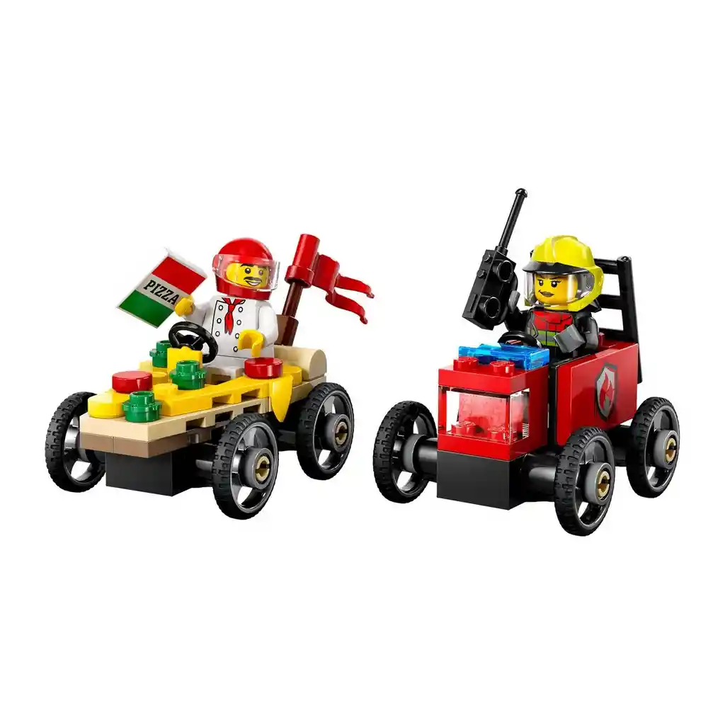 Juguete niño. ¡Sorprende a tu fan de las carreras con el set LEGO® City Pack de Autos de Carreras: Pizza vs. Camión de Bomberos (60458)! Este divertido set para niños y niñas a partir de 5 años incluye 2 autos de carreras y 2 minifiguras. Los niños pueden enfrentar al chef en su triángulo de pizza supercaliente y a la bombera en el camión de bomberos al rojo vivo. ¿Quién ganará? ¡Toma asiento y vibra con las épicas carreras urbanas! Este juguete LEGO con autos locos incluye una guía de construcción impresa paso a paso. A los niños también les espera una divertida aventura de construcción con la app LEGO Builder, donde podrán acercar y girar sus modelos en 3D, consultar su progreso y explorar y guardar otros juegos. Los sets LEGO City tienen atractivos vehículos, estructuras realistas y divertidos personajes que fomentan el juego sin límites. Tu hijo puede agregar este set con autos locos a otros de la gama LEGO City (a la venta por separado) para ampliar su mundo de posibilidades de juego. Set de carreras de autos locos de juguete: Recompensa a tu joven fan de las carreras con el set LEGO® City Pack de Autos de Carreras: Pizza vs. Camión de Bomberos para niños y niñas a partir de 5 años. ¿Qué contiene la caja? Todo lo que los niños necesitan para construir autos locos con forma de triángulo de pizza y camión de bomberos, conducidos por un chef y una bombera. Juego imaginativo: Los niños pueden colocar las minifiguras de los conductores en los habitáculos de los autos de carreras de juguete para dar rienda suelta a un mundo de emocionantes competiciones e imaginativas historias. Un divertido set de carreras de autos con guía interactiva: Los niños pueden explorar y guardar sets virtuales, acercar y girar versiones 3D de sus modelos y continuar construyendo desde donde lo dejaron con la intuitiva app LEGO® Builder. ¿Buscas un regalo divertido para un niño o una niña de 5 años o más? Sorprende a tu fan de las carreras favorito regalándole este set en cualquier ocasión especial o solo porque sí. Acción sin límites: Combina este juguete de carreras de autos con otros juegos de la gama LEGO® City (a la venta por separado) para seguir pasándolo genial a toda velocidad. Para divertirse aprendiendo: Los sets de juguetes construibles LEGO® City ayudan a los niños a adquirir confianza y desarrollar habilidades fundamentales para la vida a través del juego creativo libre.
