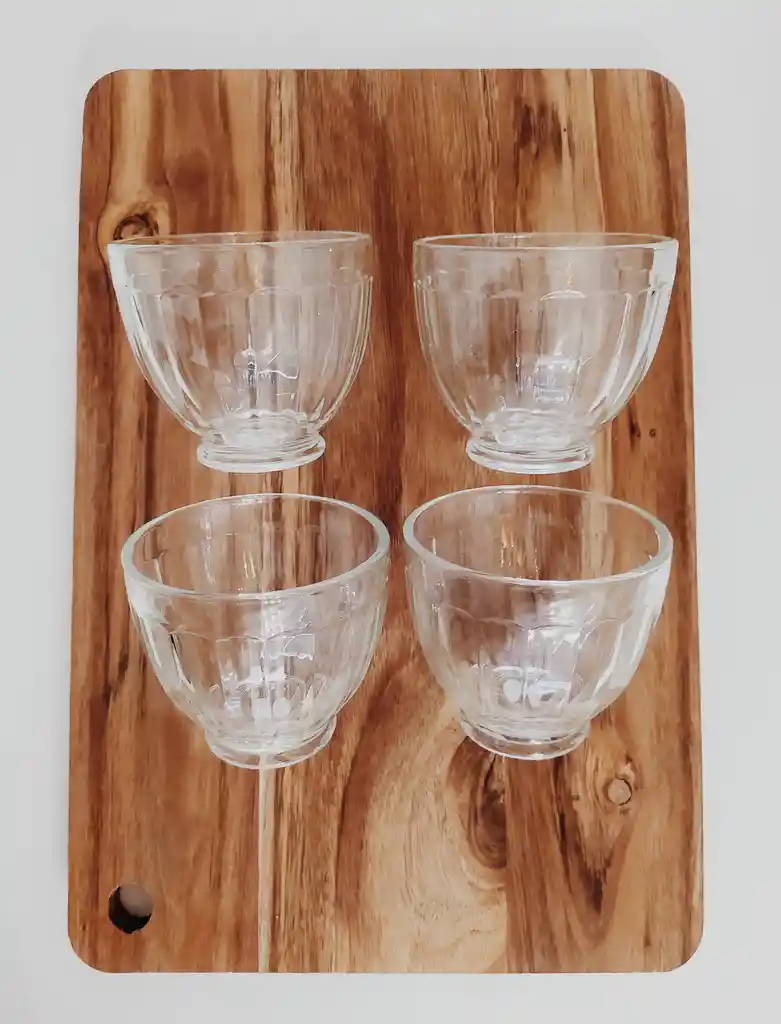 Cuatro lindas compoteras para postre, de vidrio estilo retro.