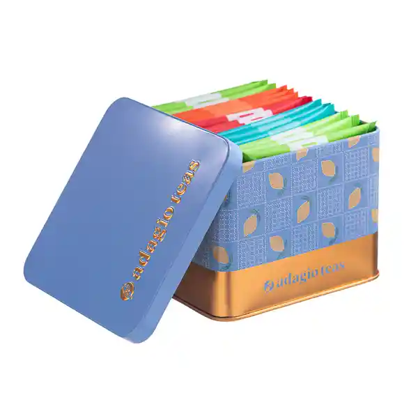 Pack Contiene 15 Unidades. Excelencia y la Calidad en Cada Taza! Tus Tés Favoritos en Formato Teabags Ahora en Una Caja Metálica Con Exclusivo Diseño Ideal Para Reutilizar. La Combinación Perfecta de 5 de Los Sabores Más Populares de Adagio Teas.