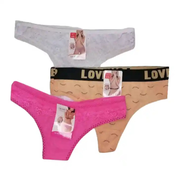 Pack de calzones tres unidades tipo bikini Material: algodón y microfibra Talla: S
