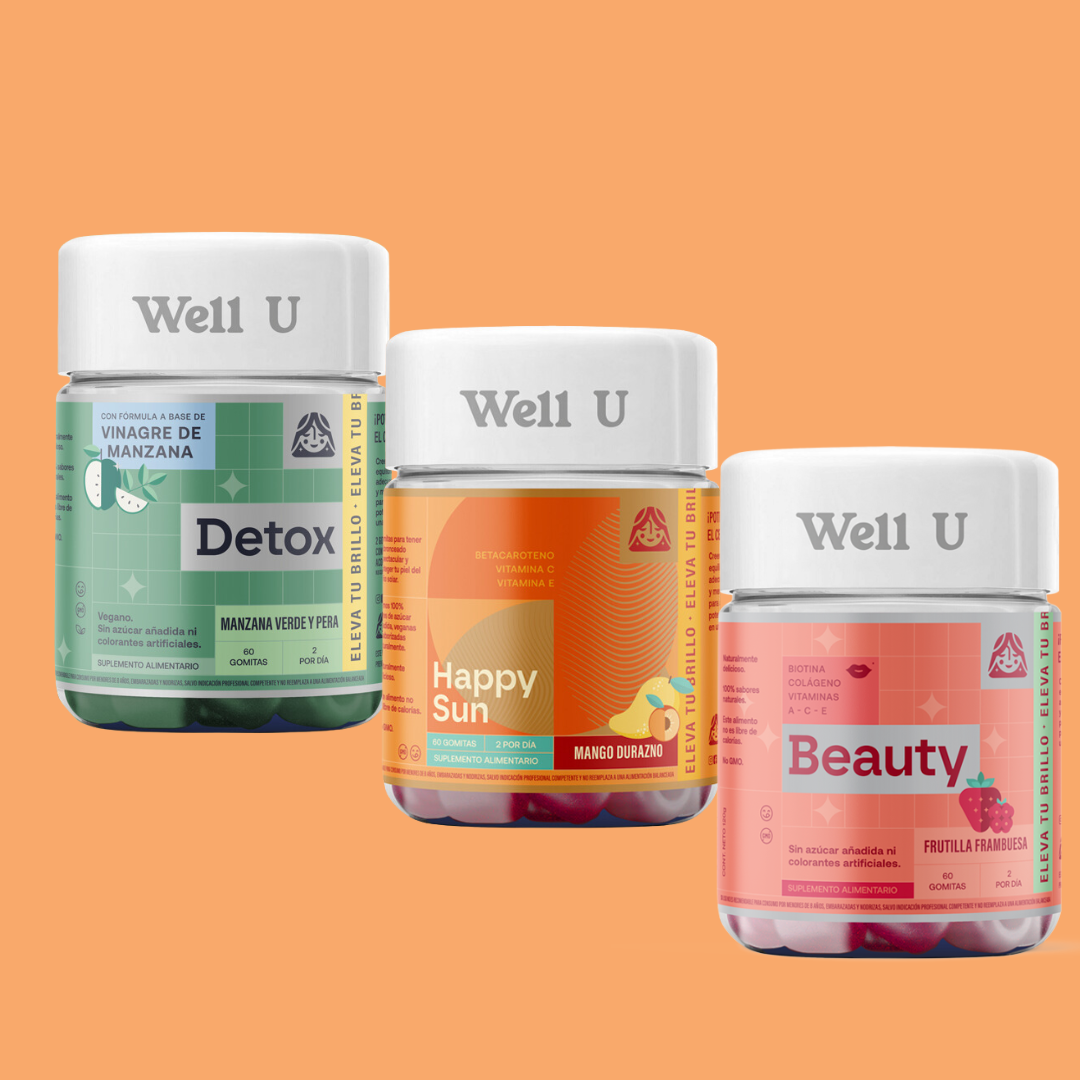 <p>¡La combinación perfecta para verte linda este verano!</p> <p>Beauty es espectacular cuidando tu pelo, piel y uñas; fortaleciéndolos y aportando un brillo extra que te encantará! Happy Sun te ayuda a conseguir un bronceado espectacular y proteger tu piel del daño solar, con una fuerte dosis de Betacaroteno y Vitaminas C y E que tienen una poderosa función antioxidante y protegen tu piel. Finalmente ,Detox será el aliado perfecto para mejorar tu salud digestiva y mantener un metabolismo activo, ayudando a controlar el peso de forma natural.</p>