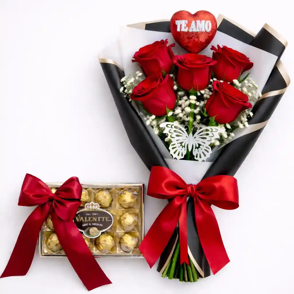 PACK DIA DEL AMOR 5 ROSAS MAS CAJA CHOCOLATE