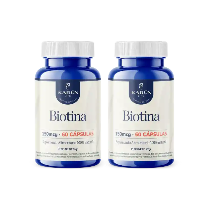 Pack Doble Biotina 150 mcg – Belleza y Vitalidad desde Adentro Fortalece tu rutina de autocuidado con el Pack Doble de Biotina 150 mcg, una vitamina esencial que apoya la salud del cabello, piel y uñas. Ideal para quienes buscan mantener una apariencia radiante y mejorar su bienestar general, gracias a su acción sobre el metabolismo energético y la producción de queratina. ¿Qué incluye este pack? 2 frascos de Biotina 150 mcg (60 cápsulas cada uno – 2 meses de uso en total) Beneficios clave: Cabello más fuerte: Estimula el crecimiento y fortalece la fibra capilar. Piel saludable: Promueve la regeneración celular y mejora la hidratación. Uñas resistentes: Ayuda a prevenir la fragilidad y favorece su crecimiento. Energía y metabolismo: Contribuye a la conversión de nutrientes en energía. Bienestar nervioso: Apoya funciones normales del sistema nervioso. Modo de uso sugerido: Tomar 2 cápsulas diarias con abundante agua. ¿Por qué elegir el Pack Doble de Biotina 150 mcg? Aporta un suministro continuo de 2 meses. Fórmula pura y de alta biodisponibilidad. Ideal para rutinas de cuidado capilar, cutáneo y metabólico. Sin azúcar, sin gluten y apto para complementar un estilo de vida saludable. Advertencias: Este suplemento no reemplaza una alimentación equilibrada. No es un medicamento y no previene, trata ni revierte enfermedades. No recomendado para niños menores de 8 años, embarazadas o personas con condiciones médicas preexistentes sin consultar con un profesional. Mantener en un lugar fresco y seco, fuera del alcance de los niños. Aporta belleza, energía y bienestar diario con el Pack Doble de Biotina 150 mcg.