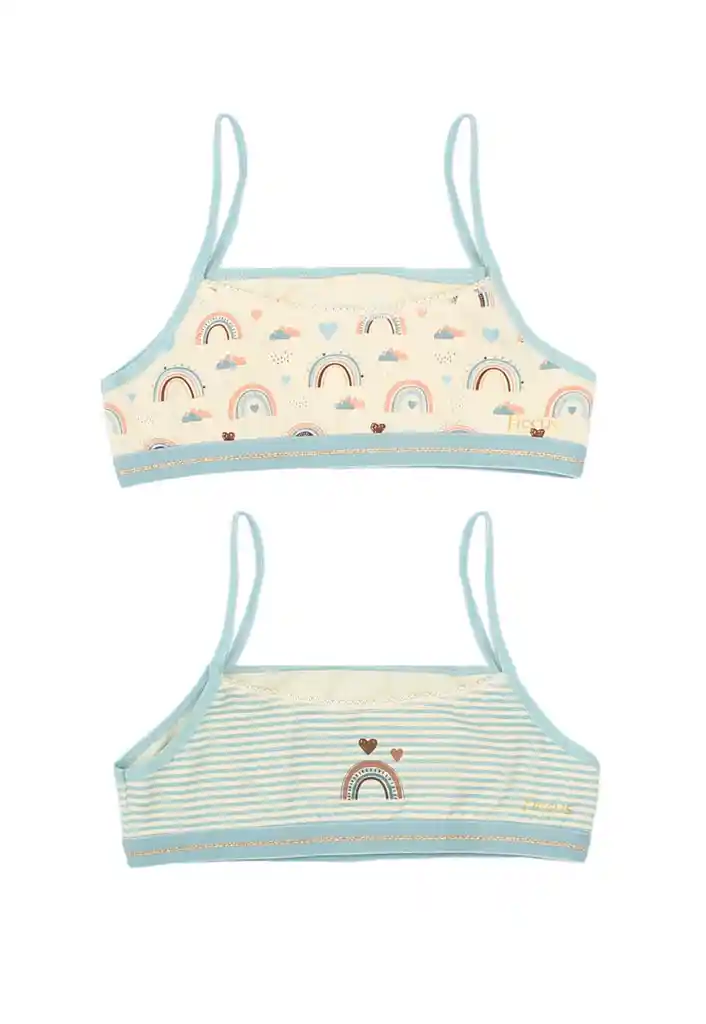 Pack doble sostén kids niña ficcus 647 Talla: 12 años Género: Niña Modelo :Ri Composición: 95% Algodón 5% Elastano Garantía: 6 meses Cuidados de la prenda: Lavado con agua a tº máxima de 30º. No blanquear. No secar a máquina. Planchar a temperatura baja