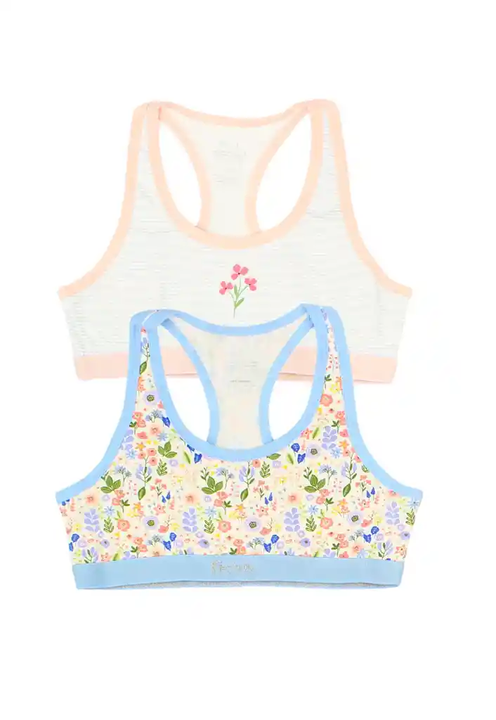 Pack doble sosten teens niña 663 Talla: 14 años Género: Niña Modelo :Ri Composición: 95% Algodón 5% Elastano Garantía: 6 meses Cuidados de la prenda: Lavado con agua a tº máxima de 30º. No blanquear. No secar a máquina. Planchar a temperatura baja