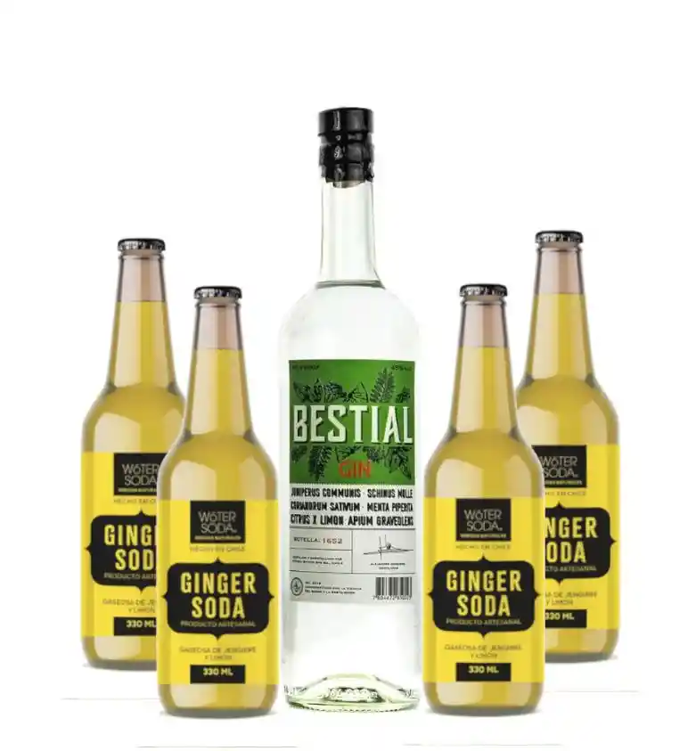 Pack Gin Bestial 750cc + 4x Ginger Soda Espectacular promo para disfrutar! Los mejores precios los encontrarás en Portal Voy!