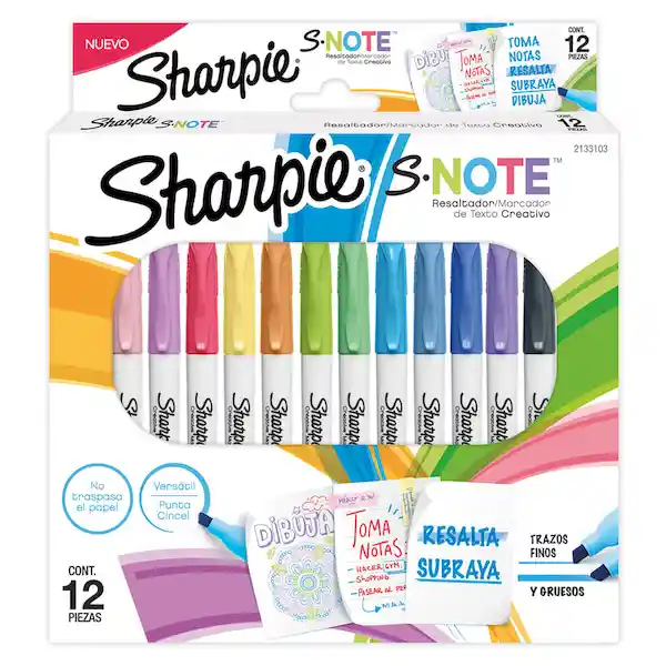 Encienda su imaginación con los rotuladores creativos Sharpie S-Note. Versátiles y divertidos, son tanto un marcador como un resaltador, agregando color a la toma de notas, subrayado, resaltado, dibujo y más. La versátil punta biselada le permite cambiar rápidamente entre líneas precisas y anchas, mientras que la tinta sin sangrado mantiene su trabajo limpio.