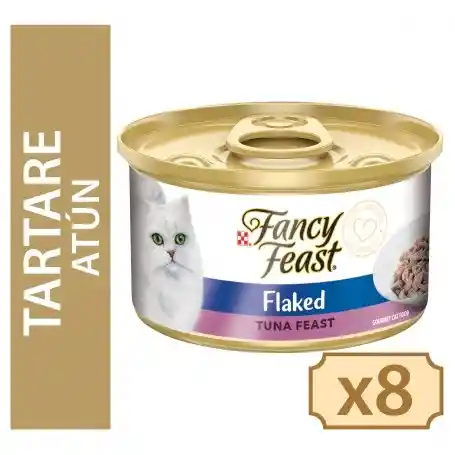 Pack de 8 latas de Fancy Feast, sabor a atún con textura de Tartar. Cada lata contiene 85 gr neto.