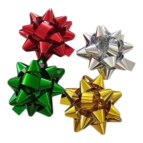 Pack de Lazos Metálicos para Regalos - 4 Unidades (Diámetro 7 cm) ¡Dale un toque brillante y elegante a tus regalos navideños o de cualquier ocasión con este pack de lazos metálicos! Cada lazo mide aproximadamente 7 cm de diámetro, ideal para paquetes pequeños y medianos. Cantidad: 4 unidades por pack (colores surtidos: rojo, dorado, plateado, verde o azul metálico, según disponibilidad). Material: Papel o cinta metálica de alta calidad con acabado brillante y reflectante que captura la luz para un efecto espectacular. Fácil de usar: La mayoría incluye adhesivo o base autoadhesiva para pegarlos directamente en el regalo, sin necesidad de complicaciones. Versátiles: Perfectos para Navidad, cumpleaños, aniversarios, bodas o cualquier celebración. Añaden sofisticación y fiesta instantánea a tus envolturas. Estos lazos son el detalle final que transforma un regalo simple en algo lujoso y memorable. ¡Haz que tus obsequios destaquen con este pack práctico y económico! 🎁✨
