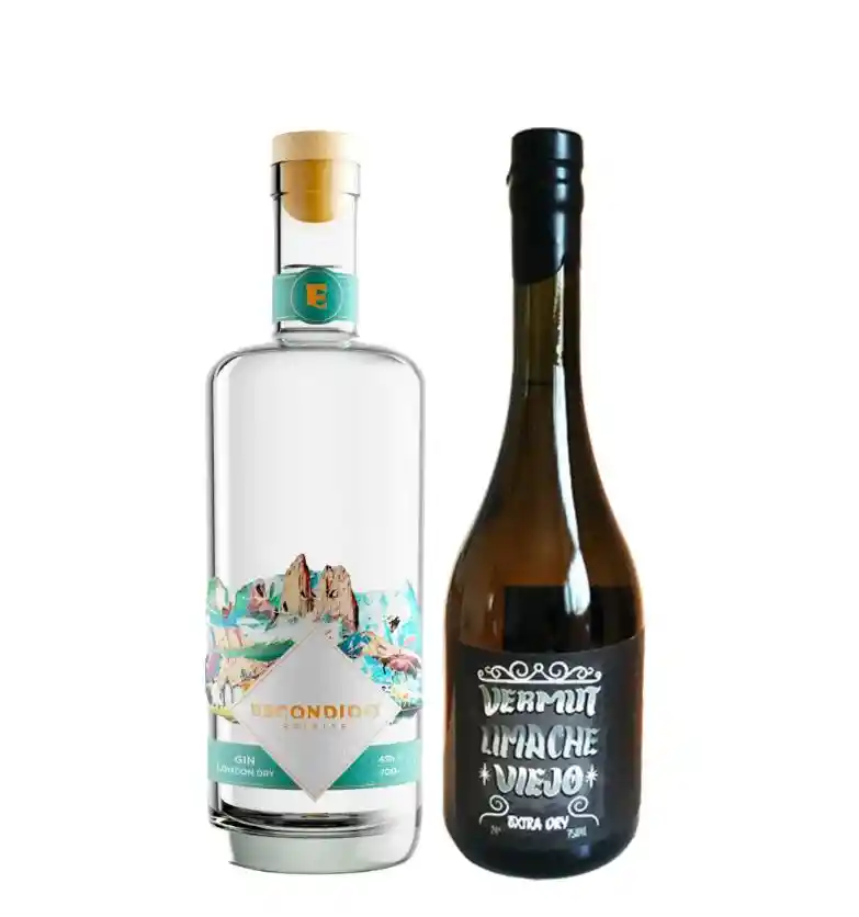 Pack Martini Compra todo para tu Bar - Gin chileno y Vermut hecho en Chile. Elabora tus Martinis con nuestra siguiente selección: - 90 ml de Gin Escondido Spirits - 10 ml Vermut Limache Viejo extra Dry - Corteza de Limón - Hielo - 1 a 3 aceitunas