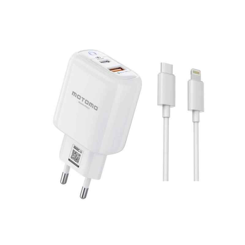 El PACK MOTOMO CABLE LIGHTING + CARGADOR 20W BLANCO es un conjunto de accesorios de carga para dispositivos Apple. Incluye un cable de carga Lighting certificado por Apple que proporciona una conexión segura y rápida entre tu dispositivo y el cargador de 20W blanco incluido. El cargador de 20W ofrece una carga rápida y eficiente para tu dispositivo, lo que te permite recargarlo rápidamente y estar listo para su uso en poco tiempo. Estos accesorios son perfectos para aquellos que buscan una solución de carga confiable y de alta calidad para sus dispositivos Apple. Con el PACK MOTOMO CABLE LIGHTING + CARGADOR 20W BLANCO, puedes estar seguro de que tus dispositivos estarán listos para su uso en todo momento.