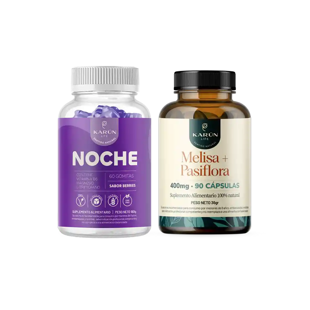 Pack Noches de Paz – Descansa, relájate y recarga energías naturalmente Crea la rutina perfecta para relajarte y disfrutar de noches de descanso profundo con nuestro Pack Noches de Paz, diseñado para ayudarte a reducir el estrés y mejorar la calidad de tu sueño. Este pack combina dos potentes aliados naturales: Gomitas Dreams (60 unidades) – Una deliciosa forma de preparar tu cuerpo para el descanso. Con L-Triptófano, Vitamina B6 y Magnesio, estas gomitas ayudan a relajar la mente y favorecer un sueño reparador. Melissa + Pasiflora (90 cápsulas) – Una fórmula natural con 300 mg de Melisa y 100 mg de Pasiflora por cápsula, ideal para promover la calma, reducir el estrés y aliviar tensiones, complementando tu día o potenciando tus noches de descanso. Beneficios clave: -Favorece la relajación durante el día y la noche. -Ayuda a combatir el insomnio y el estrés acumulado. -Proporciona un descanso profundo y reparador. -Fórmula natural sin efectos secundarios ni dependencia. -Sin gluten, sin azúcar y apto para veganos. Modo de uso sugerido: Para potenciar el descanso nocturno: -Toma 2 gomitas Dreams aproximadamente 30 minutos antes de dormir. Para relajación y bienestar durante el día: -Consume 2 cápsulas de Melissa + Pasiflora por la mañana para mantener la calma. Si lo deseas, puedes tomar 1 cápsula adicional por la noche para potenciar el descanso. Advertencias: Este suplemento no reemplaza una alimentación equilibrada. No es un medicamento y no previene, trata ni cura enfermedades. No recomendado para niños menores de 8 años, embarazadas o personas con condiciones médicas preexistentes sin consultar con un médico. Mantener en un lugar fresco y seco, fuera del alcance de los niños.
