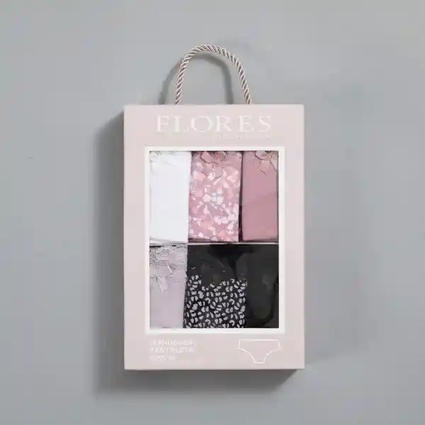 Pack Flores Contiene 6 Unidades. Pantaleta Algodón Print & Solid Color Mix Talla M 95% Algodón y 5% Elastano.