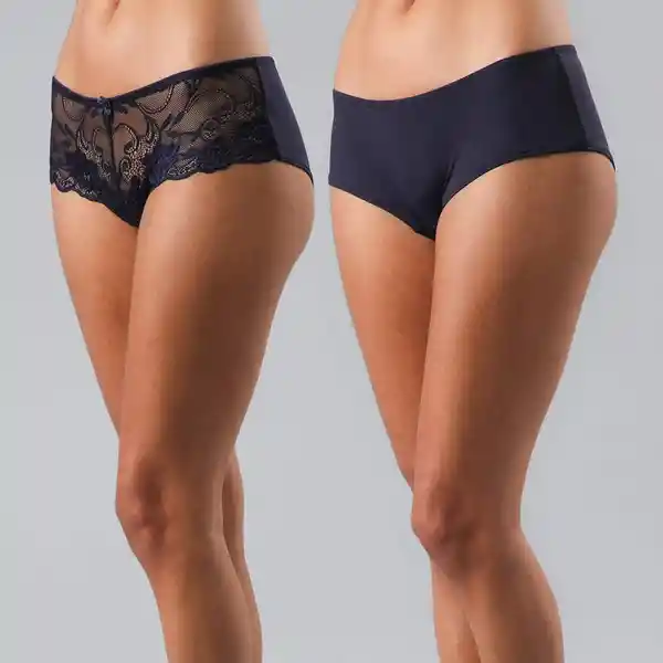Pack Flores Contiene 2 Unidades. Pantaleta Blonda y Microfibra Color Navy Talla XL 80% Poliamida y 20% Elastano.