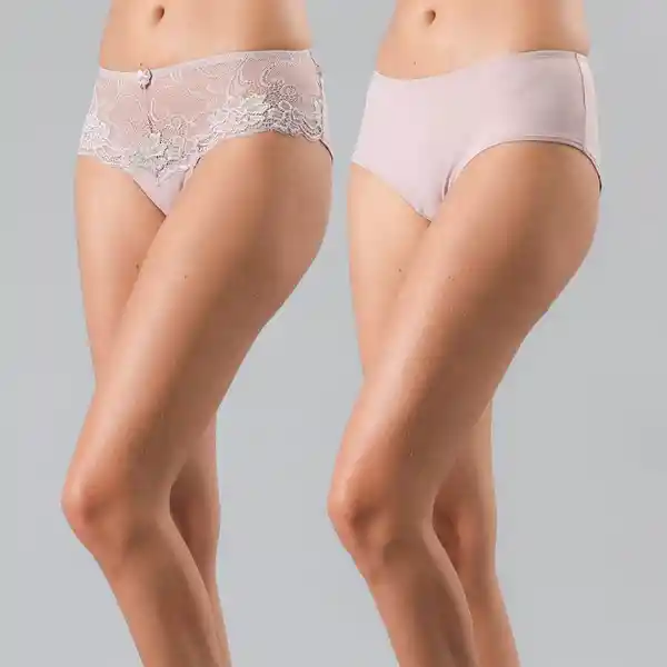 Pack Flores Contiene 2 Unidades. Pantaleta Blonda y Microfibra Color Lila Talla L 80% Poliamida y 20% Elastano.
