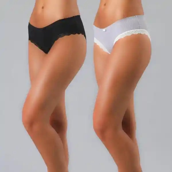 Pack Flores Contiene 2 Unidades. Pantaleta Bonded Color Negro Talla XL 95% Algodón y 5% Elastano.