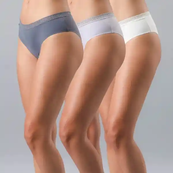 Pack Flores Contiene 3 Unidades. Pantaleta Microfibra Bonded Color Mix Talla S 87% Poliamida y 13% Elastano.
