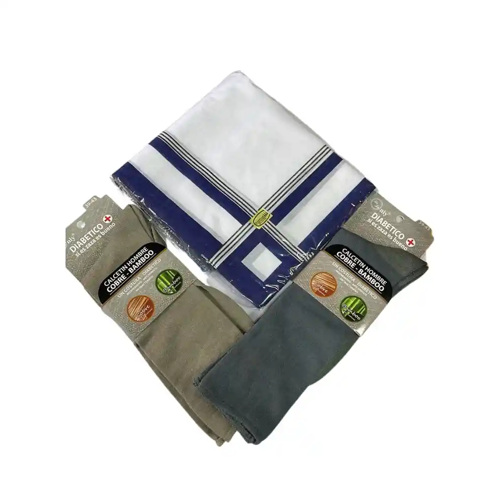 Características principales Marca PILATHUS Modelo PILATHUS Otras características Tipo de accesorio: Pañuelo Largo x Ancho: 40 cm x 40 cm Composición: Algodón Material principal: Algodón Género: Hombre Cantidad de unidades: 12 Apto para cualquier ocasión: boda, comer comida, limpiar el sudor, hacer ejercicio, frotar el vidrio y así sucesivamente. Regalo perfecto para caballeros, padrinos, padres, padres o cualquier persona que disfrute de un pañuelo clásico. 2 X CALCETINES SIN COSTURAS- SIN ELÁSTICOS- IDEAL PARA DIABÉTICOS- REGENERATIVOS- ANTIMICÓTICOS- ANTIBACTERIANOS, ANTIVIRALES Y ANTIHONGOS Composición:- 72% Bamboo- 4,5% Cobre con Poliéster- 23,5% PoliésterCuida tus pies con calcetines súper suaves de bamboo marca Only Zaza.El bamboo permite que tus pies se mantengan frescos en verano y tibios en invierno, ya que es una fibra termoreguladora. Talla 39-43