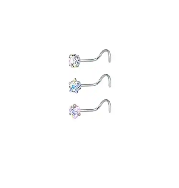Set de piercings de acero inoxidable quirúrgico, hipoalergénico. El set incluye tres (03) piezas con variación en el corte de la zirconia; Corazón, estrella y circulo. Existen dos colores, una zirconia blanca y otra que es zirconia tornasol (Puedes encontrarla en otra publicación publicación) Metal: Acero inoxidable quirúrgico Colores: Plateado. Piedra: Zirconia Tornasol. Peso aprox: 2 g Medida: 3mm. (Se envía con bella caja de regalo)
