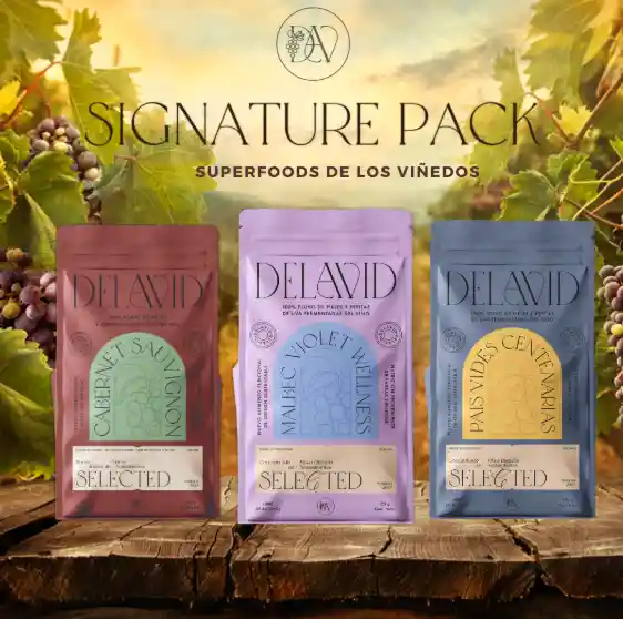 Delavid Signature Pack (3 Variedades) Disfruta lo mejor de la uva chilena con este exclusivo pack que reúne nuestras tres cepas más representativas: Cabernet Sauvignon, País Vides Centenarias y Malbec Violet Wellness. Cada una elaborada con orujo de uva fermentado, deshidratado al vacío para conservar su pureza, nutrientes y beneficios funcionales. Este superalimento en polvo es 100% natural, libre de alcohol, conservantes y azúcares añadidos. Aporta una alta dosis de antioxidantes (más de 1.600 ORAC por porción), fibra dietaria prebiótica (45% promedio) y propiedades antiinflamatorias naturales. 🍷 Incluye: Cabernet Sauvignon (100 g): Ideal para infusiones y cocina salada. País Vides Centenarias (125 g): Versátil, con historia vitivinícola única. Malbec Violet Wellness (125 g): Color intenso y sabor frutal, perfecto para postres y smoothies. 🥄 Usos versátiles: Yogures, smoothies, bowls, infusiones, sangrías sin alcohol, repostería, salsas, batidos, panes y más. 🌿 Beneficios clave: • Protege contra el estrés oxidativo • Favorece la digestión y microbiota • Alivia procesos inflamatorios • Producto plant-based, sustentable y sin aditivos Con el Delavid Signature Pack, potencia tu bienestar diario con lo mejor de la uva fermentada chilena en versión superalimento 🍇✨