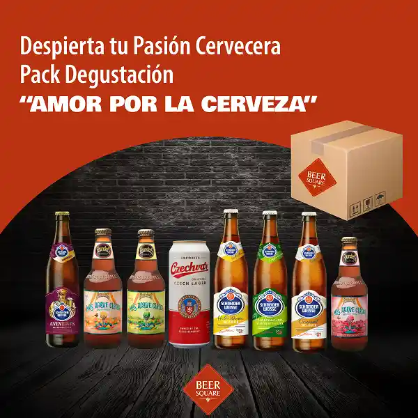 Porque el amor por la cerveza nos conecta, creamos este pack para degustar diferentes marcas y estilos de lo mejor de nuestro catálogo. Ideal para regalar, disfrutar en compañía o simplemente para darse un gusto. ¡Salud! El pack Degustación "Amor por la Cerveza" incluye 8 cervezas: 1x Czechvar Original Lager (Pilsner Checa) lata 500cc 1x Schneider Weisse Tap1 Helle Weisse (Trigo/German Weissbier) botella 500cc 1x Schneider Weisse Tap7 Original (Trigo/German Weissbier) botella 500cc 1x Schneider Weisse Tap5 Hopfenweisse (Trigo/German Weizenbock IPA) botella 500cc 1x Schneider Weisse Tap6 Aventinus (Trigo/German Weizenbock) botella 500cc 2x Founders Más Agave Lime (Imperial Gose c/ Lima Tequila Barrel Aged) botella 355cc 1x Schneiders Bayrisch Hell (German Lager/Munich Helles) botella 500cc *El pack incluye caja de regalo. *Foto referencial, incluye las cervezas del listado.