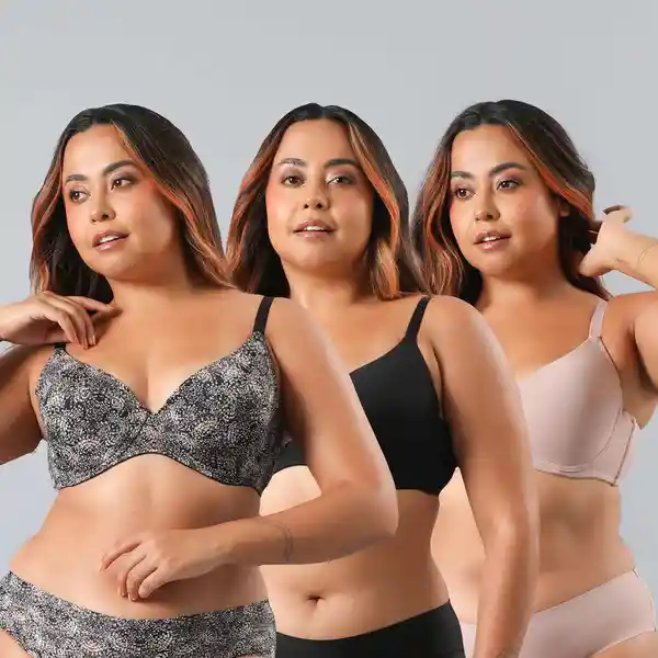 Pack Flores Contiene 3 Unidades Sostén Perfect Cover Micro Print Color Negro Talla 40C 85% Poliamida y 15% Elastano.