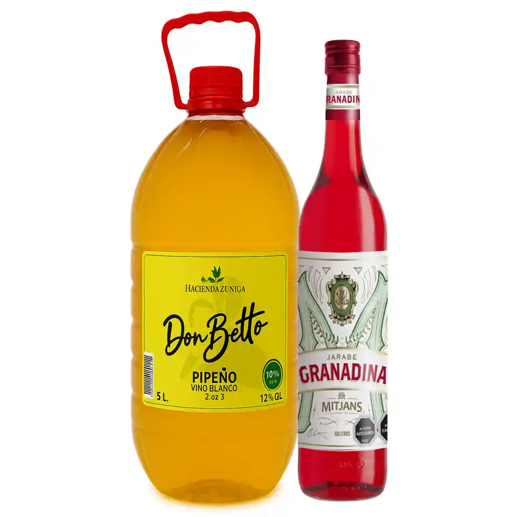 PACK TERREMOTO 1 x PIPEÑO DON BETHO 5 LITROS 1 x GRANADINA MITJANS 900CC Producido en Origen, San Javier Región del Maule. Descubre el auténtico sabor del 'Terremoto - Chimbombo Vino Pipeño Don Betho 5 Litros', una bebida ideal para disfrutar en cualquier celebración. Este vino pipeño, producido en la reconocida Hacienda Zúñiga, ubicada en San Javier, Región del Maule, es perfecto para acompañar momentos especiales. Con un volumen de 5 litros, su presentación en envase PET lo hace práctico y fácil de manejar. Es una opción refrescante y deliciosa que no puede faltar en tu mesa. Este vino blanco, es ideal para compartir con amigos y familiares. Su versatilidad lo convierte en el complemento perfecto para diversas ocasiones, asegurando que cada sorbo sea una experiencia única. ¡Prepárate para disfrutar de un auténtico terremoto!